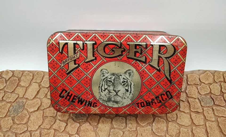The value of these tins is also influenced by their rarity and the condition in which they are found. Tiger Tobacco was one of the major tobacco brands of its time, and as such, their advertising tins are seen as important artifacts. Well-preserved examples with minimal rust or fading are especially prized by collectors. The vintage tobacco industry is a niche market, and these tins are a prized piece for enthusiasts. For those seeking historical advertising memorabilia, Tiger Tobacco tins offer a unique and valuable collectible.