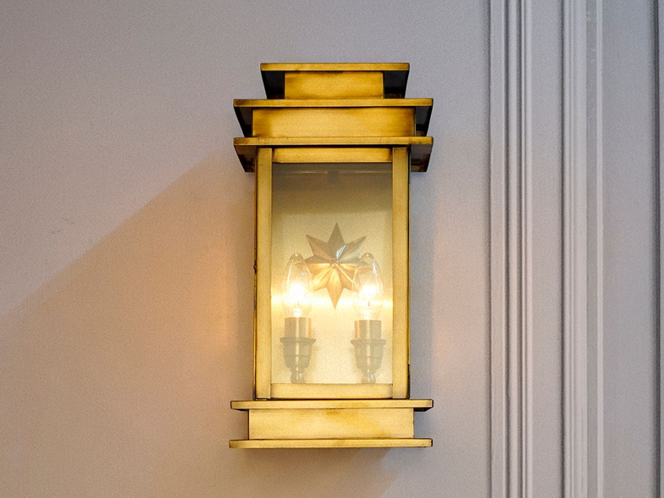 Antique Brass Art Deco Star Rectangular Wall Sconce