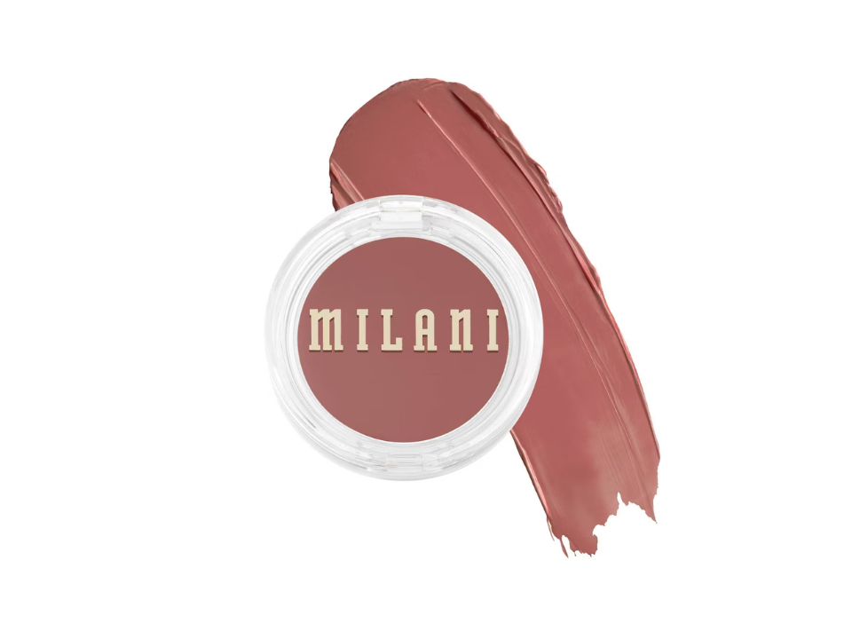 Milani Cheek Kiss Cream Blush delivers a smooth cream color that sits well on the cheeks. The texture spreads easily and blends into foundation without pulling at the base makeup. At around $10 this blush gives nice color for the cost. The formula has a soft feel that does not get thick or sticky on the skin.
