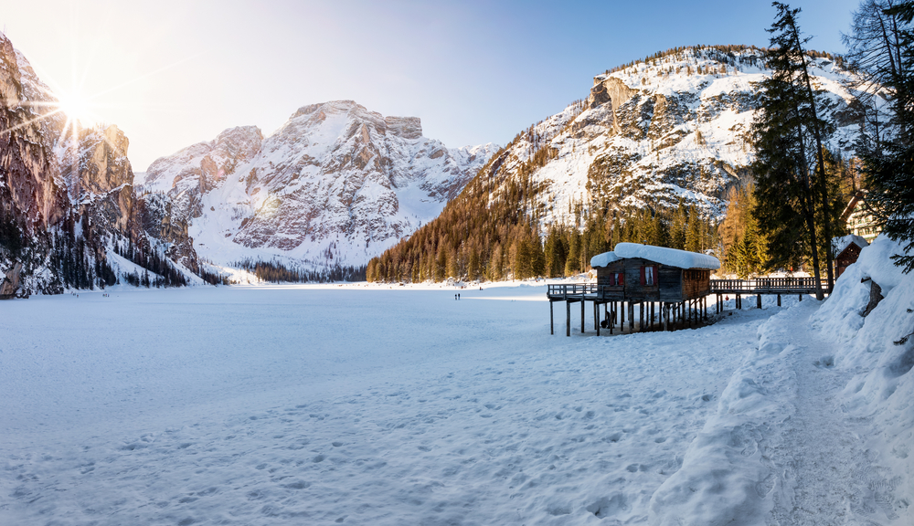 While the area is popular during the summer months, the winter landscape brings a quieter and more serene experience. Visitors can walk around the lake and take in the stunning views of the surrounding mountains, which look even more dramatic with the snow. The frozen surface of the lake offers a unique opportunity for photographers and nature lovers. The peaceful atmosphere makes it a must-see location for anyone visiting the Dolomites in winter.