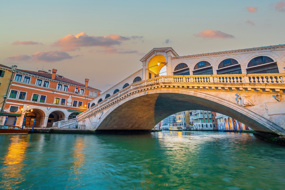 The Rialto Bridge, completed in 1591, is one of the most iconic landmarks in Venice, Italy. Spanning the Grand Canal, the bridge was initially designed by Antonio da Ponte and has since become a symbol of the city’s architectural beauty. It is built from stone and features a single, wide arch that provides access between the districts of San Marco and San Polo. The Rialto Bridge has served as a major crossing point for Venetians and tourists alike for centuries, connecting the bustling markets and shops on either side of the Grand Canal.
