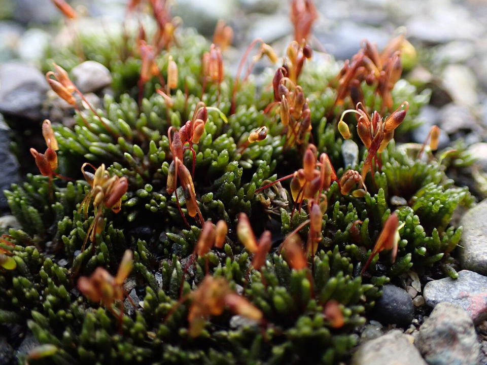 Bryum argenteum, also known as silvery bryum, is a moss that thrives in old, shaded forests with a steady supply of moisture. This moss is distinctive for its silvery-green appearance, which stands out against the dark forest floor. It is a pioneering species, often one of the first to colonize disturbed areas, but it also thrives in older, undisturbed forests. Silvery bryum is important for its ability to retain moisture and prevent soil erosion, contributing to the stability of the forest ecosystem.