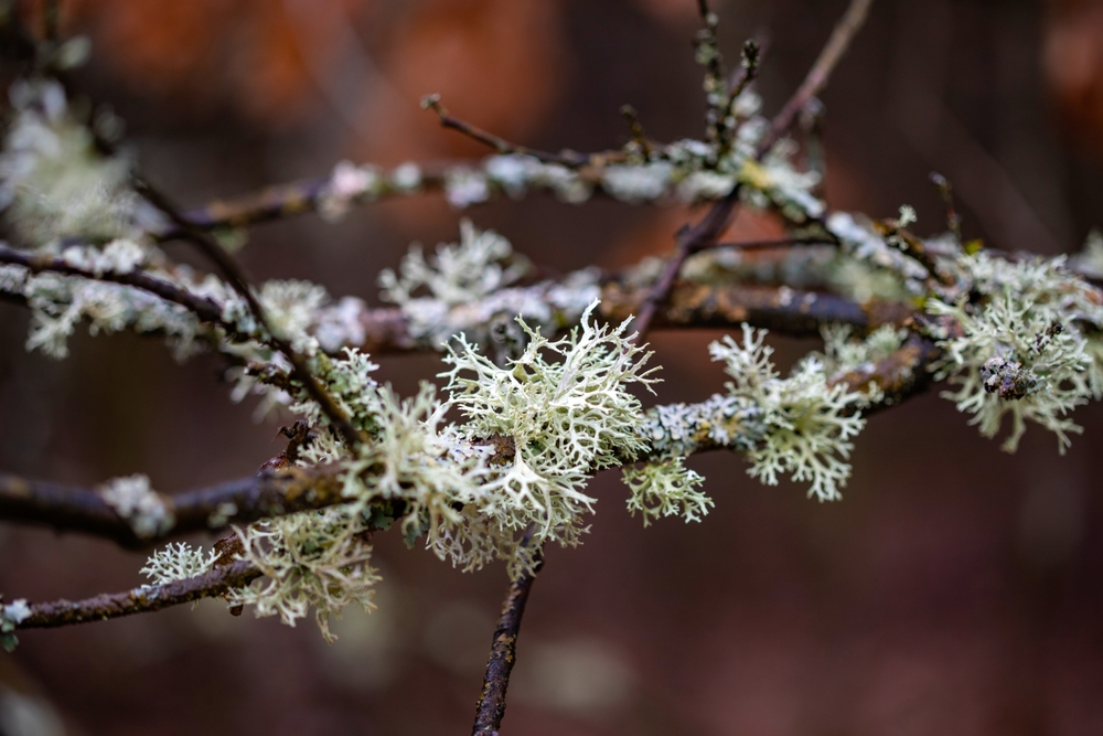 Evernia prunastri, or tree moss, is a lichen commonly found hanging from the branches of ancient trees in temperate forests. This lichen plays an essential role in the forest by absorbing moisture from the air and helping to maintain the humidity levels in the environment. Its ability to thrive in shaded, humid conditions makes it an indicator of a healthy, undisturbed forest. The presence of tree moss in a forest often signifies a stable, long-established ecosystem.