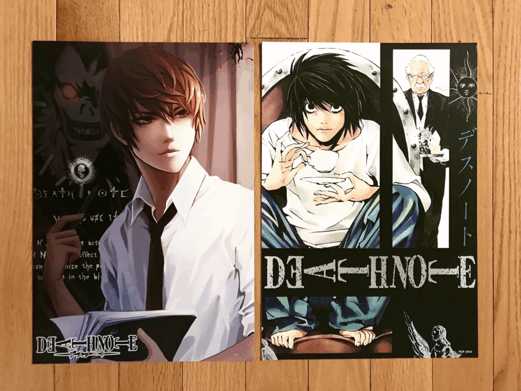 Death Note posters have been a staple in fandom bedrooms since the anime’s release in 2006. These posters usually feature the central characters, Light Yagami and L, in their intense battle of wits. Printed on high-quality paper, the posters come in various sizes, with 18×24 inches being a common dimension. Prices typically range from $15 to $40, depending on rarity and design. Limited edition posters with exclusive artwork tend to fetch higher prices among collectors.