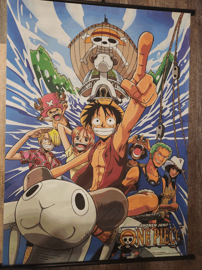 One Piece wall scrolls, introduced in the early 2000s, are another essential piece of anime memorabilia. These scrolls often depict scenes of the Straw Hat Pirates, with Luffy in the center of most designs. Made from durable fabric, the scrolls are typically around 35×50 cm, making them perfect for display. The cost of a standard scroll generally ranges from $20 to $40, though limited editions can go for higher prices. Fans of the show appreciate the intricate art and vibrant colors.