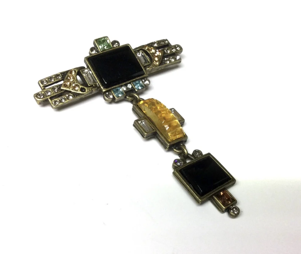 Art Deco Geometric Brooches in Onyx, Rock Crystal, or Rhinestones
