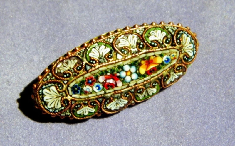 Victorian micro mosaics are made from tiny cut tiles, called tesserae, that create pictures like flowers, birds, or famous landmarks. Up close, the best ones look almost like a painting because the pieces are so small and tightly fit. Many were made in Italy and brought home as travel souvenirs, which is why you see scenes of Rome, St Peter’s, and ancient ruins. The frames can be gold, gilt, or sometimes silver, and the front often sits slightly domed.