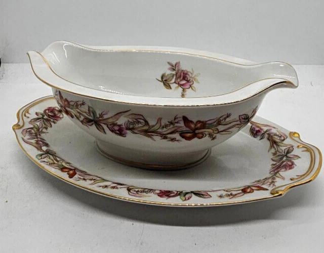 A china gravy boat with its underplate is a smaller antique set that brings shape and detail without needing a lot of space. The curved handle, pointed spout, and matching tray give it a sculptural look that stands out among flatter pieces. Floral china patterns look sweet in this form, while transfer patterns can make it feel more graphic and crisp. It is a fun item to display because many people do not expect to see it outside a dining setup.
