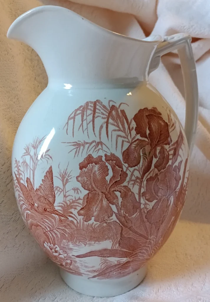 A transferware pitcher with a floral scene adds height fast, which helps when a shelf has too many low bowls and plates. The curved handle and narrow neck give it movement, and the printed pattern adds detail without feeling fussy. Even when it is empty, it still looks complete because the shape does so much work. If you find one with gentle staining inside, it can still be a strong display piece as long as the outside looks good.