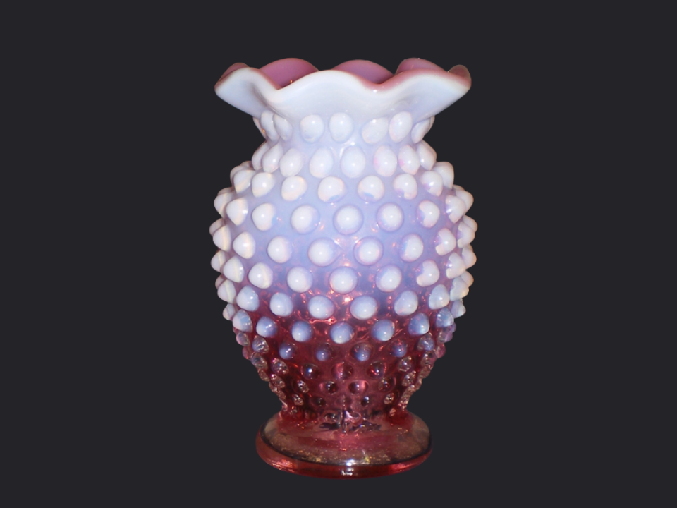 Fenton Hobnail Glass Vases, produced in the United States from the 1930s onwards, are known for their distinctive raised hobnail pattern, which creates a textured surface. These vases are especially popular due to their vibrant colors and the delicate craftsmanship involved in creating the hobnail design. Depending on size, color, and condition, the market value for a Fenton Hobnail Vase can range from $500 to $3,000. The signature hobnail pattern makes these vases a standout in any glass collection.