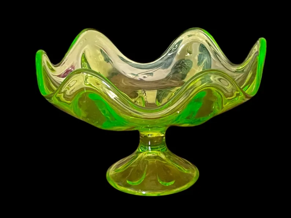Produced in the United States during the 1930s, the Viking Glass Nuclear Bowl is notable for its vibrant color, often in shades of green, amber, or cobalt. The bowl’s bold, modernist design and heavyweight make it a favorite among collectors of American art glass. Depending on size and condition, these bowls can fetch between $1,000 and $6,000. The striking colors and substantial presence of the bowl make it a statement piece in any collection.