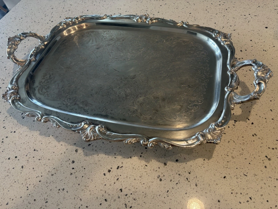On the underside, you will often find hallmarks, maker names, or plating stamps that give clues about age and quality. Beginners can use these trays on coffee tables to hold candles and books, on dressers to gather perfume bottles, or in kitchens as striking serving pieces for guests. Tarnish can be polished away if you like a bright look, or left in place for a softer, more aged feel, so you can match the tray to your preferred style. Many vintage silver-plated serving trays sell in the range of about $30 to $120, with large or heavily decorated examples reaching $150 or more.