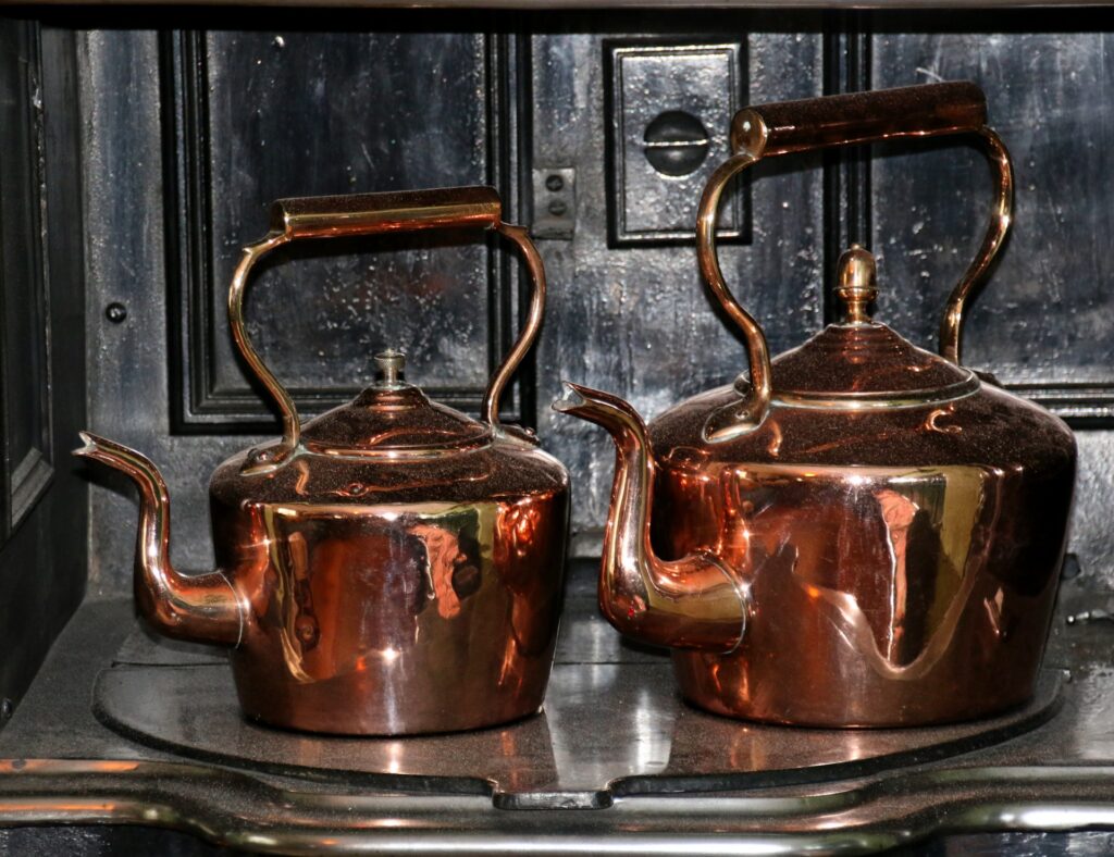 Displaying copper kettles gives your room a lived-in and well-used feel that can be very welcoming. Collectors check for dents and patina since some buyers like the worn look, while others prefer a gentle shine. Pairing them with other metal accents can help unify the space. Even unused, they become decorative pieces that tell a story of kitchens’ past.