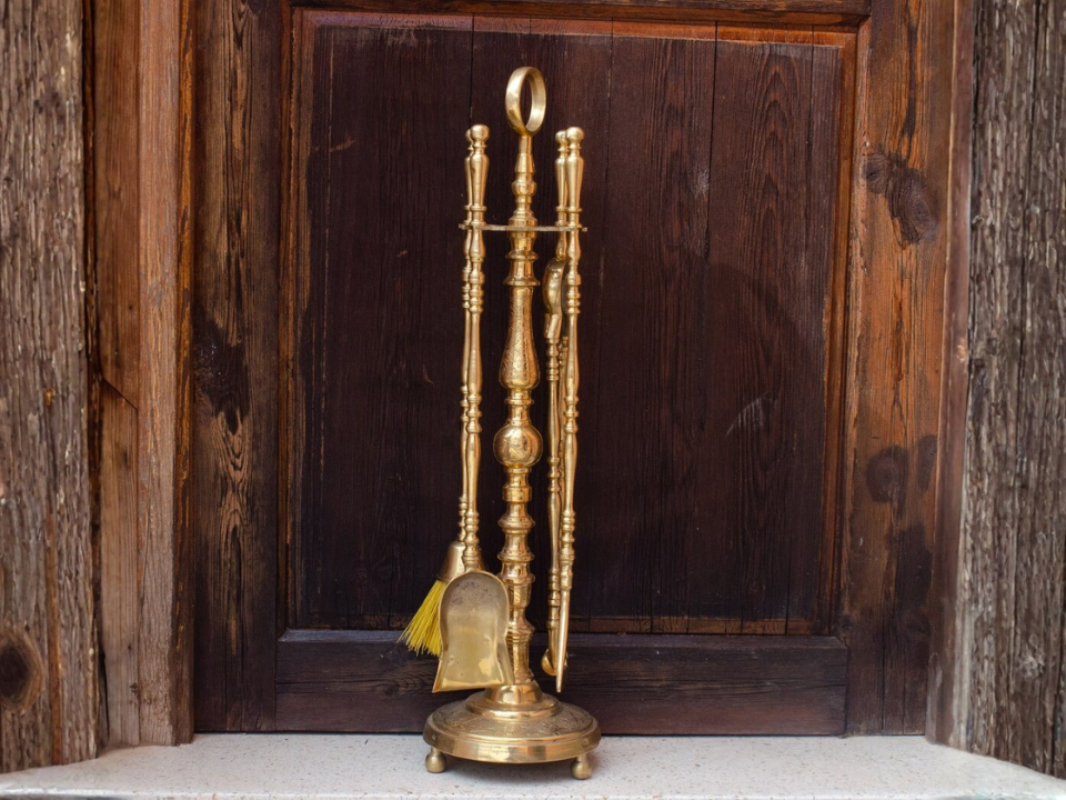 Adding this set to an existing fireplace makes the room feel lived in while giving warmth to the decor. Collectors pay attention to stable stands and tool joints because bent or broken tools reduce desirability. A gentle polish keeps the brass looking warm without removing the aged character. When placed next to stone or brick, the metal contrast feels inviting.
