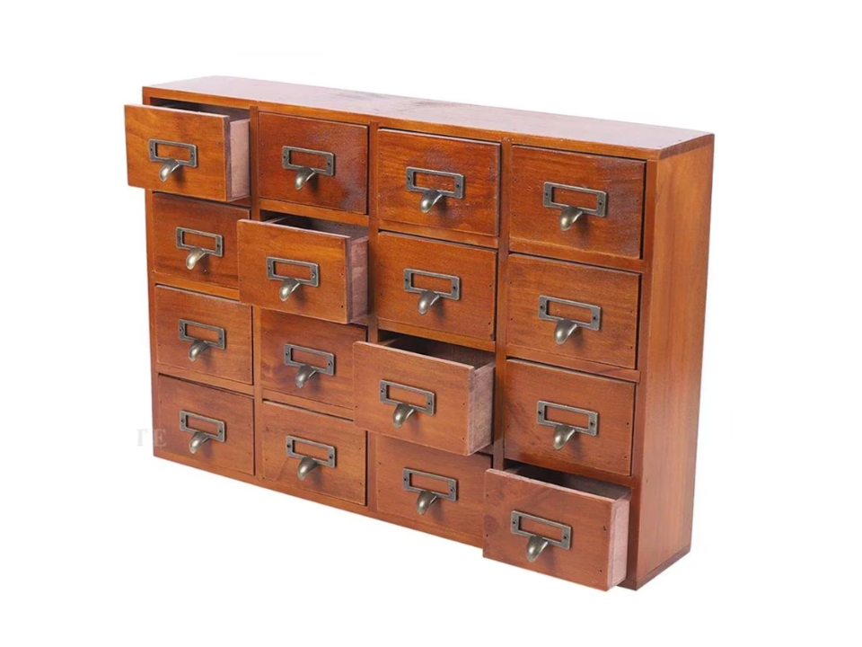 Drawer function matters a lot, so open several and see if they slide without sticking or grinding. Original pulls, label holders, and worn surfaces are part of the charm, so light wear is usually fine. Watch for water damage, missing parts, or strong odors, since those can be hard to fix and can lower the value fast. If you want something smaller, a tabletop drawer unit works well for keys, mail, and cords.