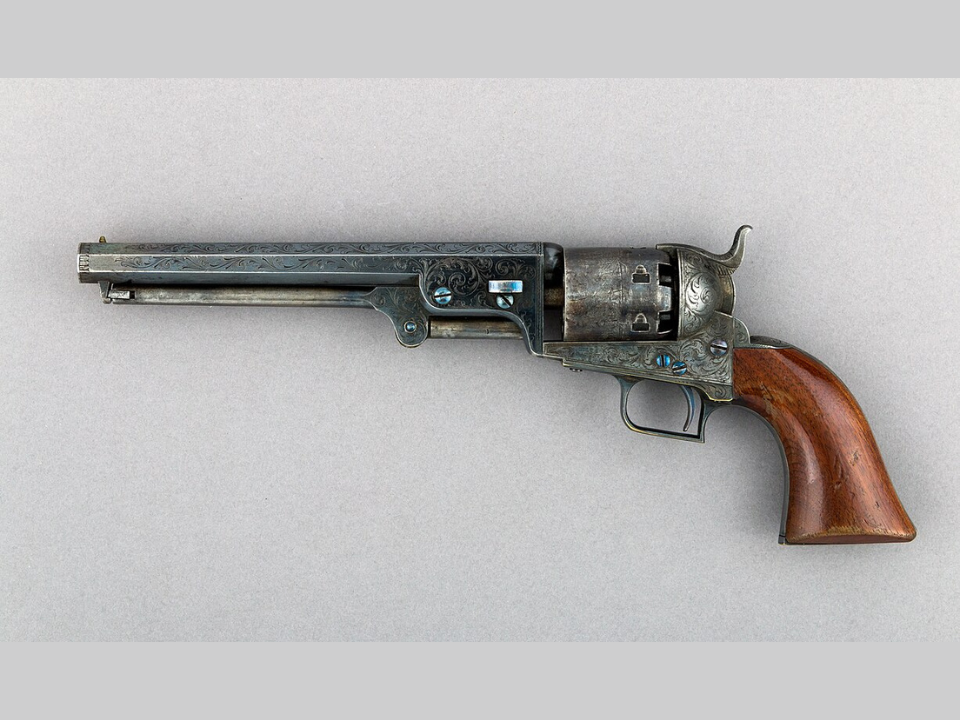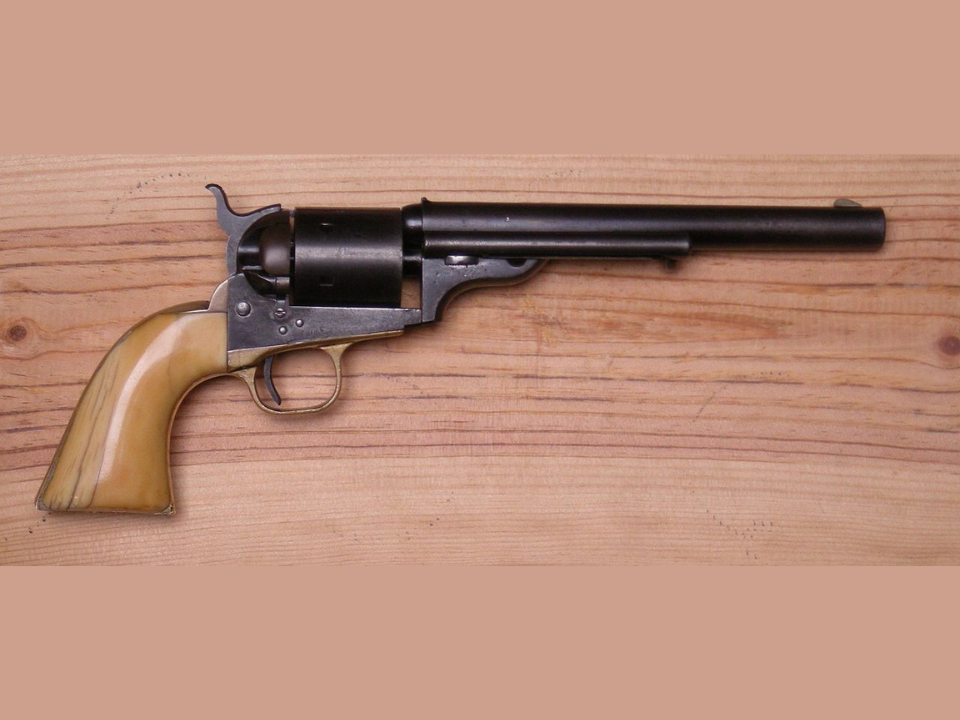 The Colt Model 1851 Navy Revolver is a classic example of Samuel Colt’s innovative design, featuring a .36 caliber six-round cylinder and a distinctive naval battle scene engraved on the cylinder. Introduced in 1851, it became one of the most popular revolvers of its time, widely used during the American Civil War and beyond. Collectors are particularly interested in early production models and those with unique features such as special engravings or historical provenance.