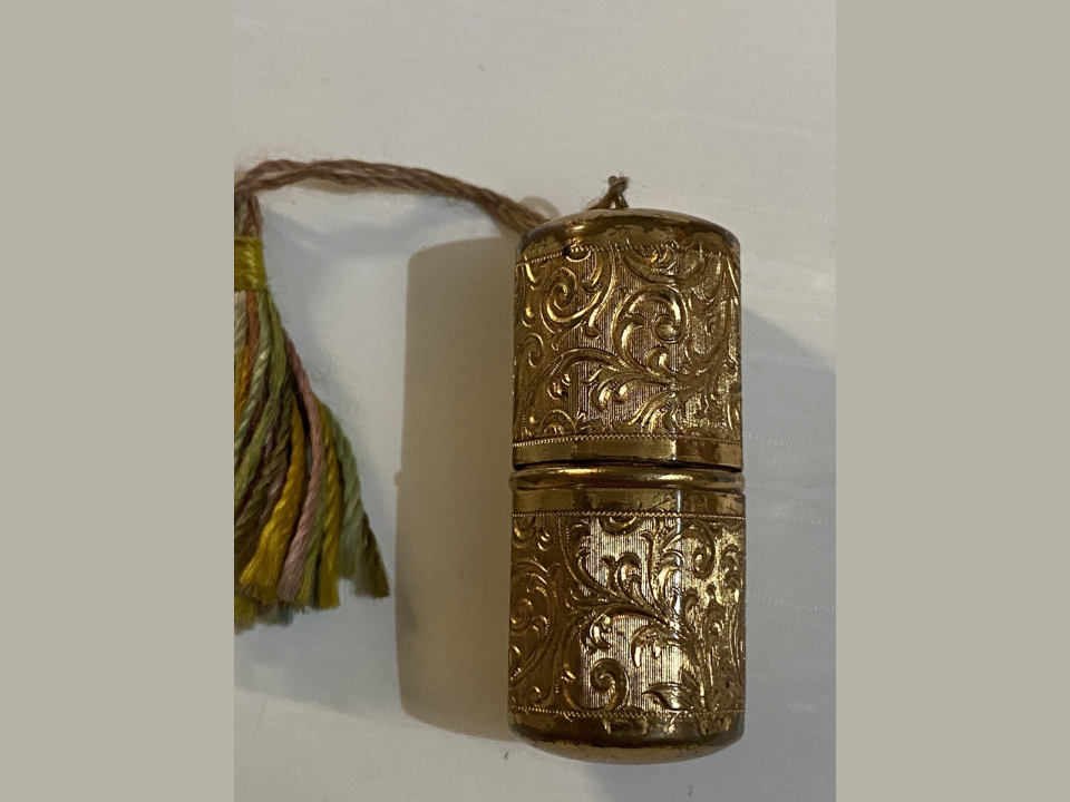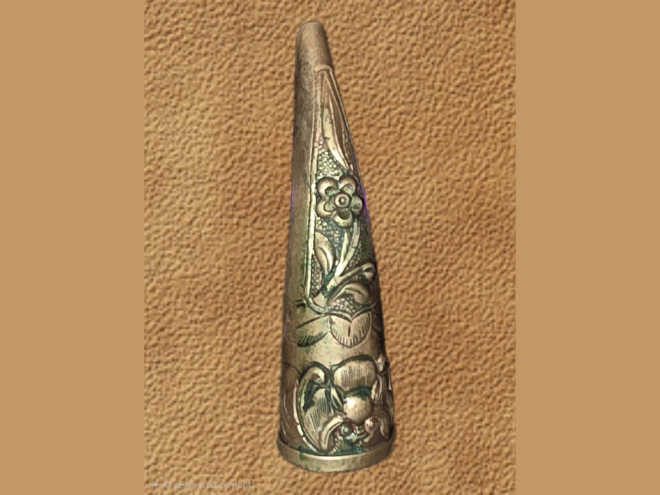 The brass finger guard, worn by seamstresses, protected fingers from the sharp needles and threads of sewing. These finger guards often had a simple yet elegant design, and their durability made them an essential tool for long sewing sessions. Some were engraved with patterns or initials, enhancing their appeal to collectors.