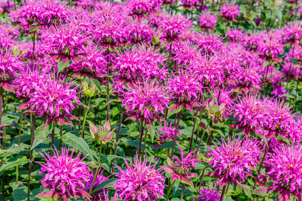 Bergamot, also known as bee balm, is a fragrant plant that releases a citrusy, mint-like aroma when its leaves and flowers are crushed. This plant’s vibrant blooms, typically in shades of red, pink, or purple, attract bees, butterflies, and hummingbirds, adding life and movement to your garden. Bee balm thrives in full sun to partial shade and moist, well-drained soil. It grows in clumps, with soft, aromatic foliage that enhances the garden with both scent and color.