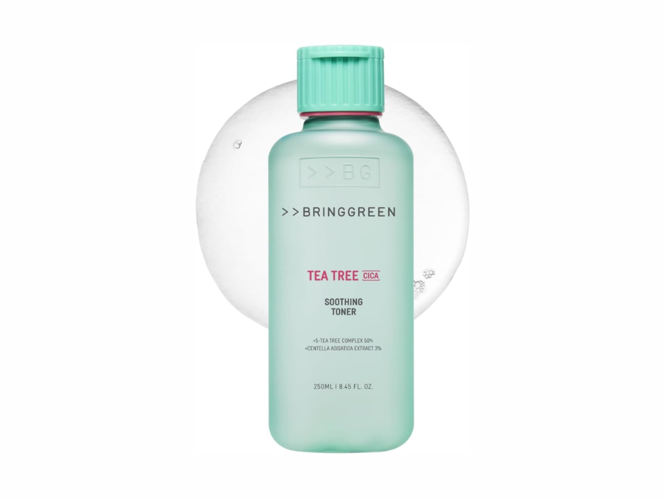 Bringgreen Tea Tree Cica Soothing Toner is one of the lower priced options at about $10. The 5-layer tea tree complex with cica and an instant cooling feel meant to calm overheated, irritated skin. That kind of cooling angle is especially appealing when cheeks turn red after time outside.