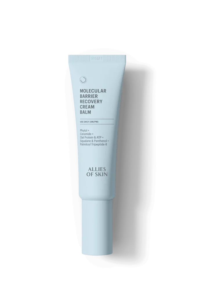 Allies of Skin Molecular Barrier Recovery Cream Balm uses ceramides, panthenol, and soothing agents to support a weakened skin barrier and calm redness or dryness. Its balm-style formula gives skin a soft, nourished feel while locking in hydration. Many sensitive skin or reactive skin users turn to it when they need a gentle healing layer.
