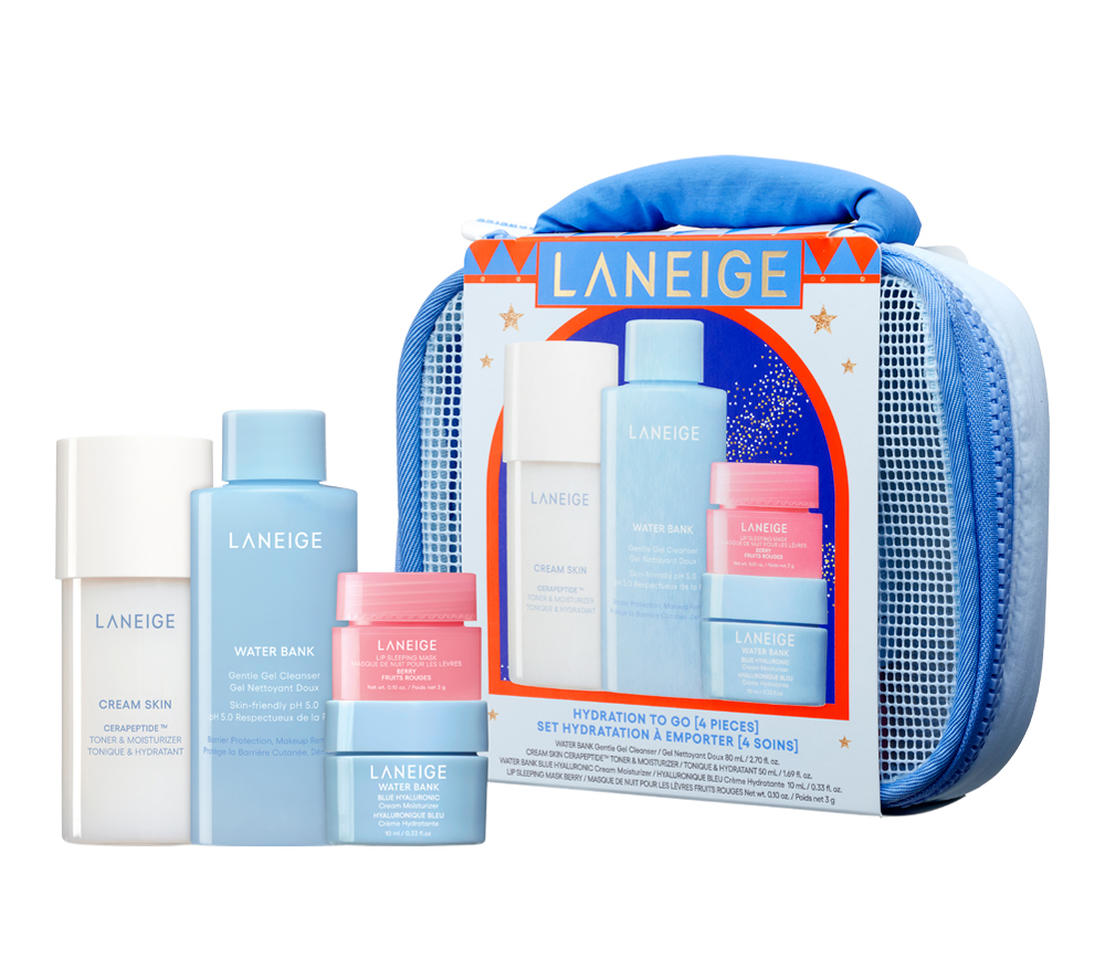 This set from LANEIGE is designed for hydration on the go, with multiple travel-friendly products that address moisture loss and environmental stress. It’s well-suited for gifting because it covers a skincare need many people have during colder months-skin that feels tight or loses glow due to indoor heating and dry air. The contents usually involve a hydrating serum, mist, cream and perhaps a mask, all sized for convenience. The brand is known for its comfortable textures that layer well under makeup or sleep routines. Packaging is compact, making it easy to gift.