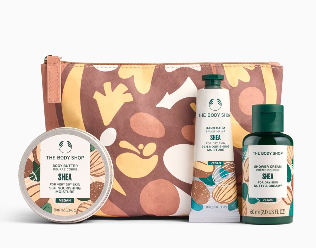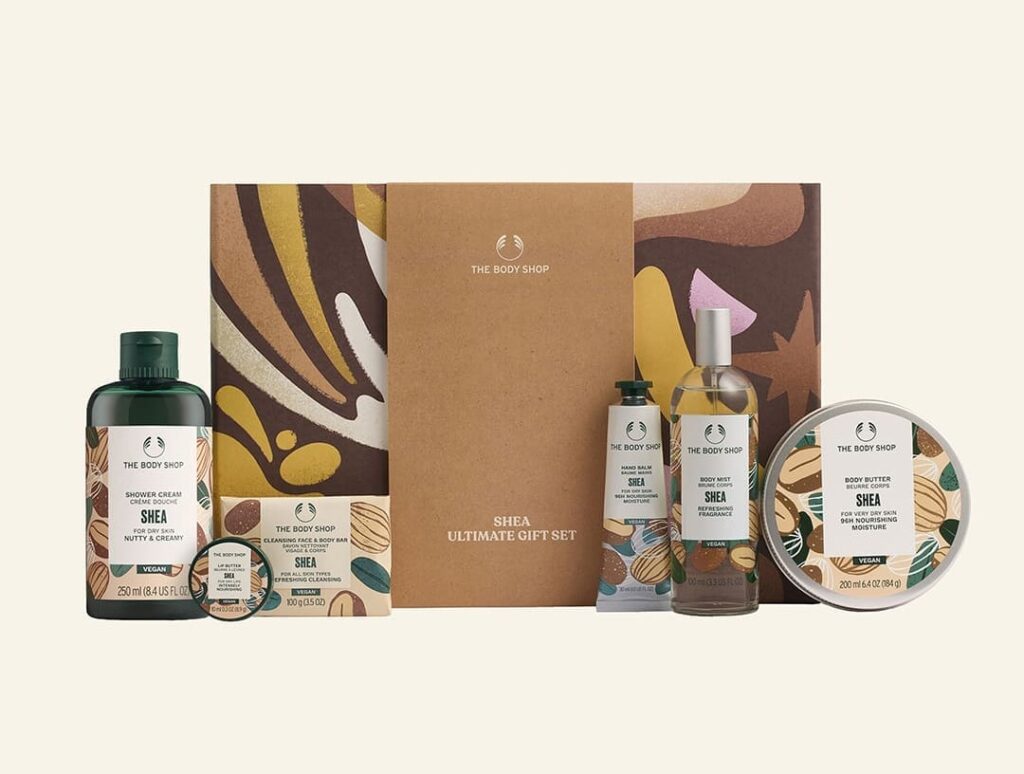 This gift set by The Body Shop steps up the shea butter theme with a more generous collection of items across bodycare and possibly bath accessories. It is ideal for someone who enjoys richer textures and wants a full experience rather than a sampler. The contents may include large-size body butter, body lotion, hand treatment, and maybe a gentle soap or exfoliator. If you’re looking to give something that feels a little more generous for the holidays, this set fits. It’s well-packaged and ready to present.