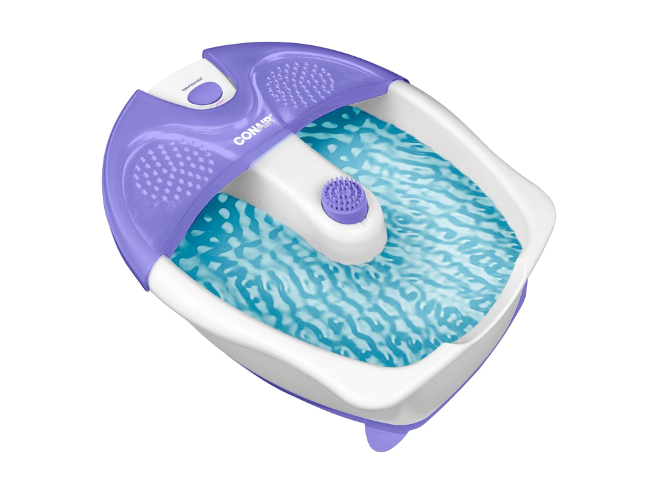 The Conair Foot Spa lets you soak your feet in warm water with gentle bubbles and massage rollers for a calming finish after long days on your feet. The textured surface gives a slight rub to soles that feel nice when your feet are tender from standing. It heats the water to a soothing warmth that stays steady through your soak.