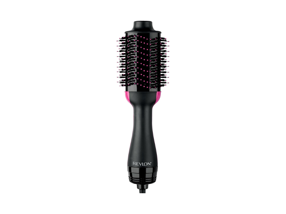 The Revlon One-Step Hair Dryer and Volumizer combines the drying power of a blow dryer with the styling ability of a brush, all in one tool. It is designed to quickly dry and style hair, leaving it smooth and full of volume with minimal effort. The ceramic coating helps reduce heat damage, while the nylon pins and tufted bristles detangle hair as it dries.