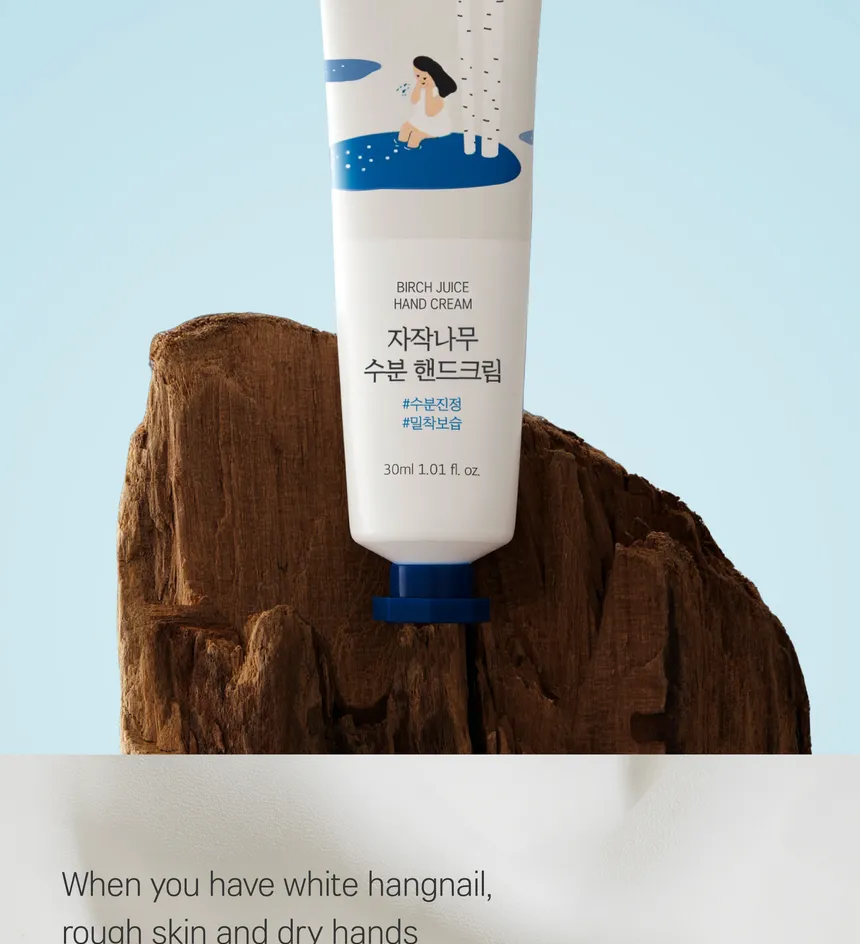 Round Lab Birch Juice Hand Cream sounds like a very well-balanced modern Korean hand cream. Retailer listings describe birch sap, several types of hyaluronic acid, and ceramides, plus a buttery texture that absorbs without stickiness. That ingredient mix makes it easy to picture for hands that feel dry, a little flaky, and short on bounce after winter. It also mentions care for brittle nails, which gives it a nice extra point for readers who want more than basic moisture.
