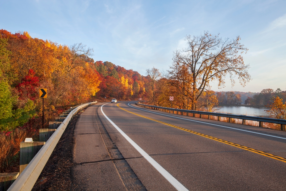 The Great River Road follows the Mississippi River for more than 2,000 miles, running through 10 states. Driving the entire stretch would take over 30 hours, but most travelers focus on sections between Minnesota and Illinois. October is an ideal time to enjoy this route because the river bluffs are surrounded by brilliant autumn foliage. Charming river towns like Galena, Illinois and Red Wing, Minnesota make excellent stops. The views combine rolling hills, farmland, and river scenery that feels timeless.