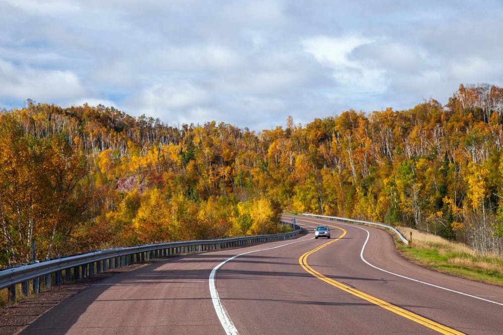 Highway 61, known as the North Shore Scenic Drive, stretches about 150 miles along Lake Superior. Driving it takes about three hours without stops, but you will want plenty of time to explore. October is the peak season, with fall colors framing the lake’s shoreline. The mix of cliffs, forests, and water makes the scenery unforgettable. Each mile feels filled with fresh views.