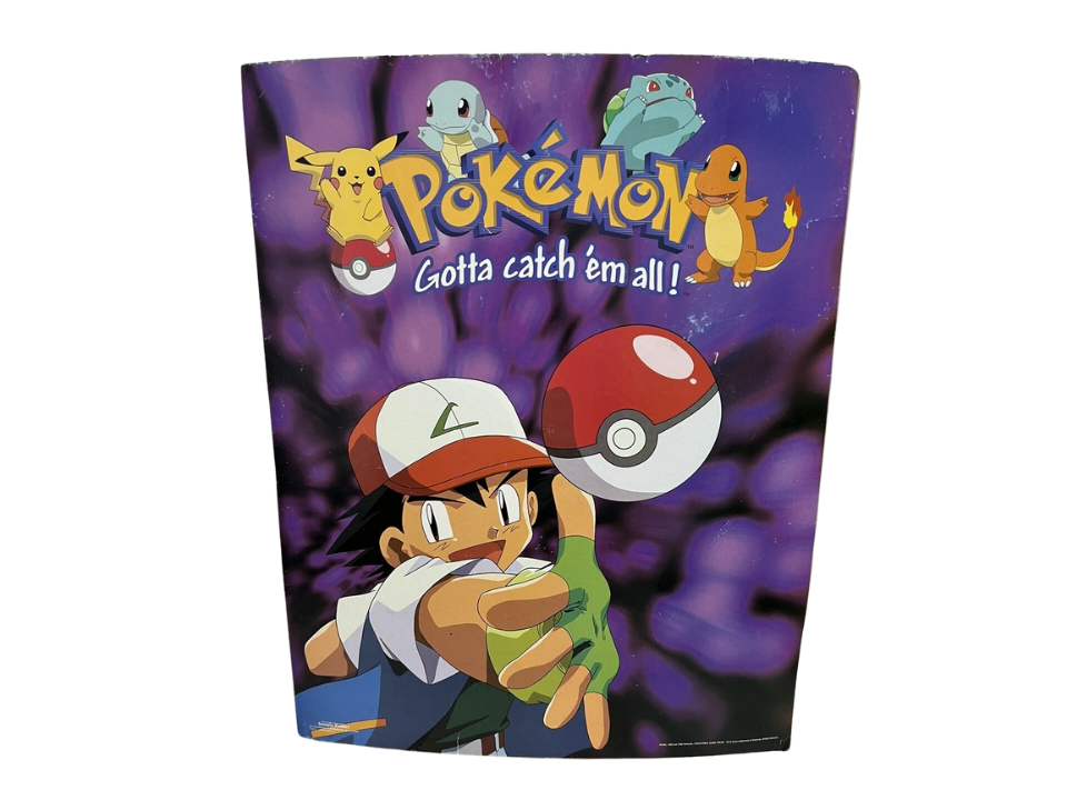 Made in 1999 by Nintendo as a large promotional item celebrating the original Pokémon franchise, this oversized Gotta Catch ‘Em All poster has become a notable find. Collectors value it for its nostalgic status and its connection to early Pokémon marketing campaigns. Posters in very good condition can sell for roughly $70 to $120. This item is often sought because its larger size and original design make it memorable from the franchise’s first boom.