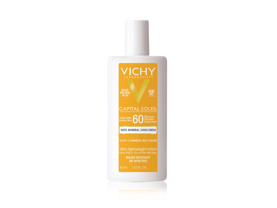 Vichy’s Idéal Soleil Tinted Face Mineral Sunscreen SPF 60 offers high protection with a tinted formula that evens out the complexion. This sunscreen uses a blend of mineral filters, including zinc oxide, to provide broad-spectrum protection against UVA and UVB rays. The formula is enriched with Vichy’s volcanic water, which helps to hydrate and protect the skin from environmental stressors.