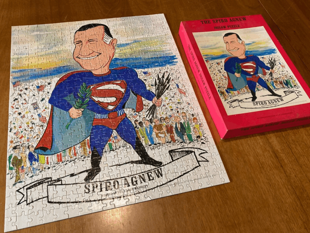This vintage puzzle, released in the 1970s, features a striking image of Superman in action. The 500-piece puzzle shows Superman in his classic red and blue costume, battling against some of his most notorious foes. The puzzle is highly regarded for its nostalgia and the iconic artwork that reflects the era’s comic art style. It is considered a collectible item today, with prices ranging from $50 to $100, depending on the condition of the box and pieces.