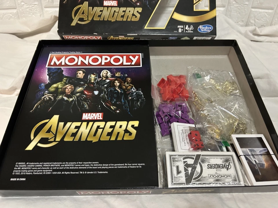 Released in 2019, this special edition of Monopoly is based on The Avengers film. Players can choose from character pieces such as Iron Man, Captain America, and Thor, each representing their respective superhero. The game includes modified rules and themed properties, making it a unique twist on the classic Monopoly gameplay. It has become a popular collectible for Marvel fans, with its current market value ranging from $40 to $60, depending on its condition.