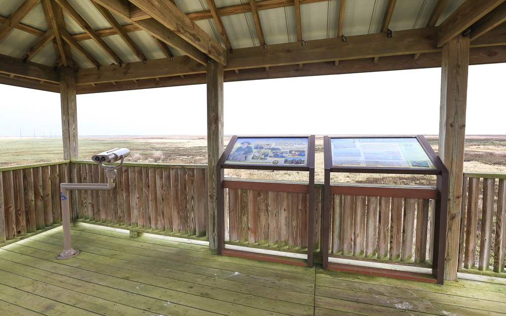 Visitors often see herons perched quietly on stump fences as small waves lap near their feet and gulls wheel overhead in search of fish. The wide open space of marsh and water invites long periods of calm watching from the path or platform without urgent movement.