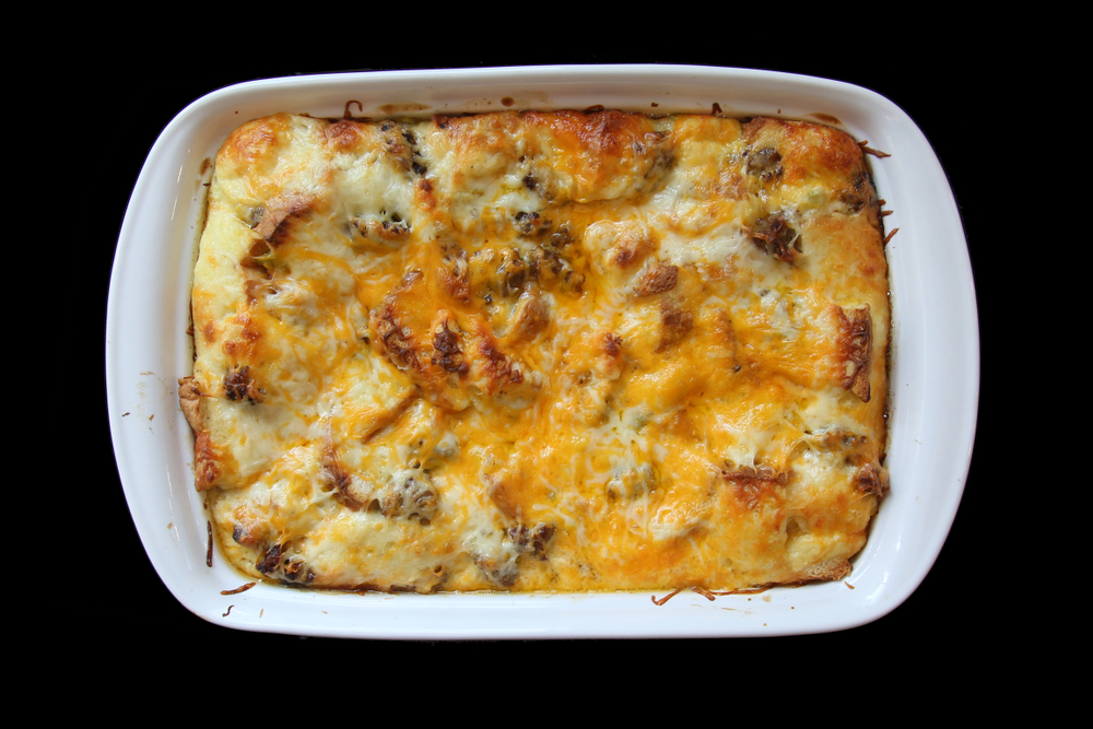 For this casserole, you’ll need 2 medium sweet potatoes (peeled and cubed), 8 large eggs, 1 cup of shredded cheddar cheese, one-half cup of cooked sausage (crumbled), and one-fourth cup of milk. Preheat the oven to 350 degrees Fahrenheit and grease a baking dish. Roast the sweet potatoes for 20 minutes, then layer them with the sausage and cheese in the dish. Whisk the eggs and milk together, pour over the sweet potato mixture, and bake for 30-35 minutes.