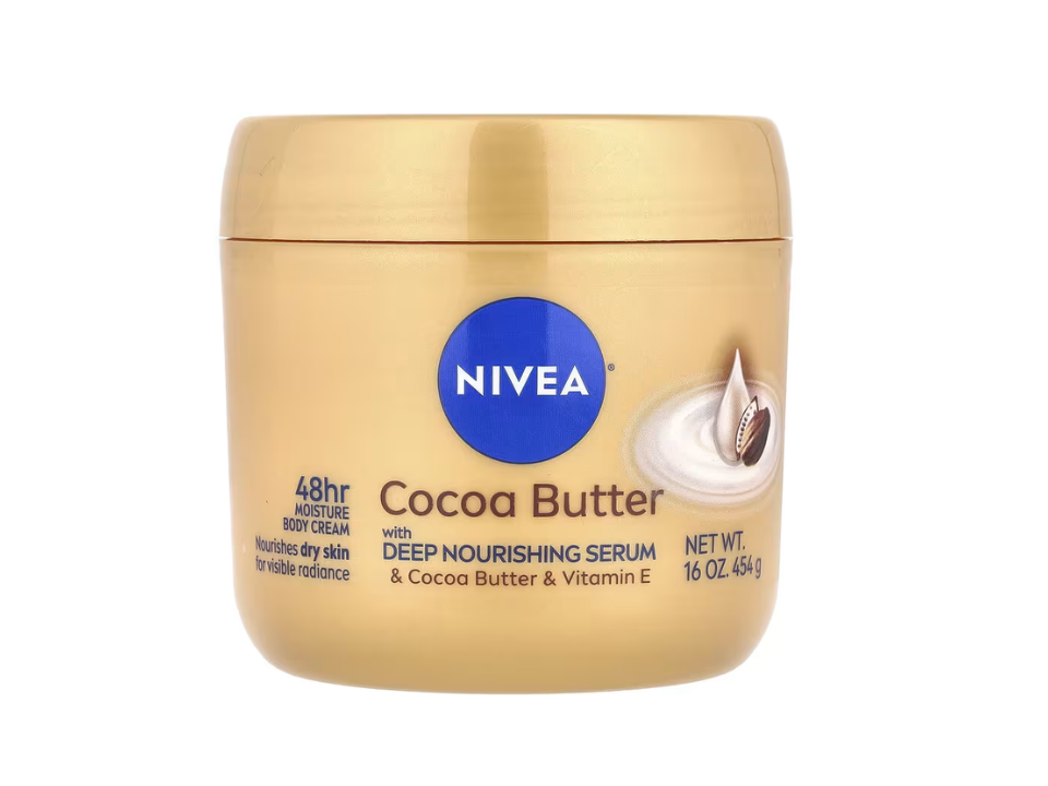 Nivea’s body cream blends cocoa butter with gentle moisturizers that feel rich yet absorb fast. It does not leave oily traces, which makes it ideal for daily use. You will find it at a very reasonable price in many locations. It keeps skin feeling smooth even in dry conditions. Many people choose it as their go to body cream for everyday hydration.