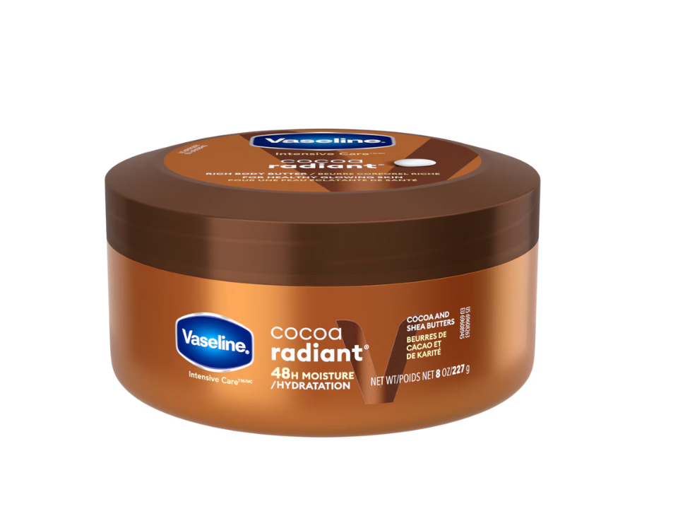 Vaseline’s Cocoa Radiant Whipped Body Butter has a whipped, airy texture that feels light yet deeply moisturizing. It’s infused with cocoa butter and Vaseline’s signature healing complex to give the skin a soft, hydrated feeling without the greasy residue. This product is an affordable option for those looking for effective moisturization at a low price. The whipped texture allows for easy application and quick absorption, making it perfect for busy individuals.