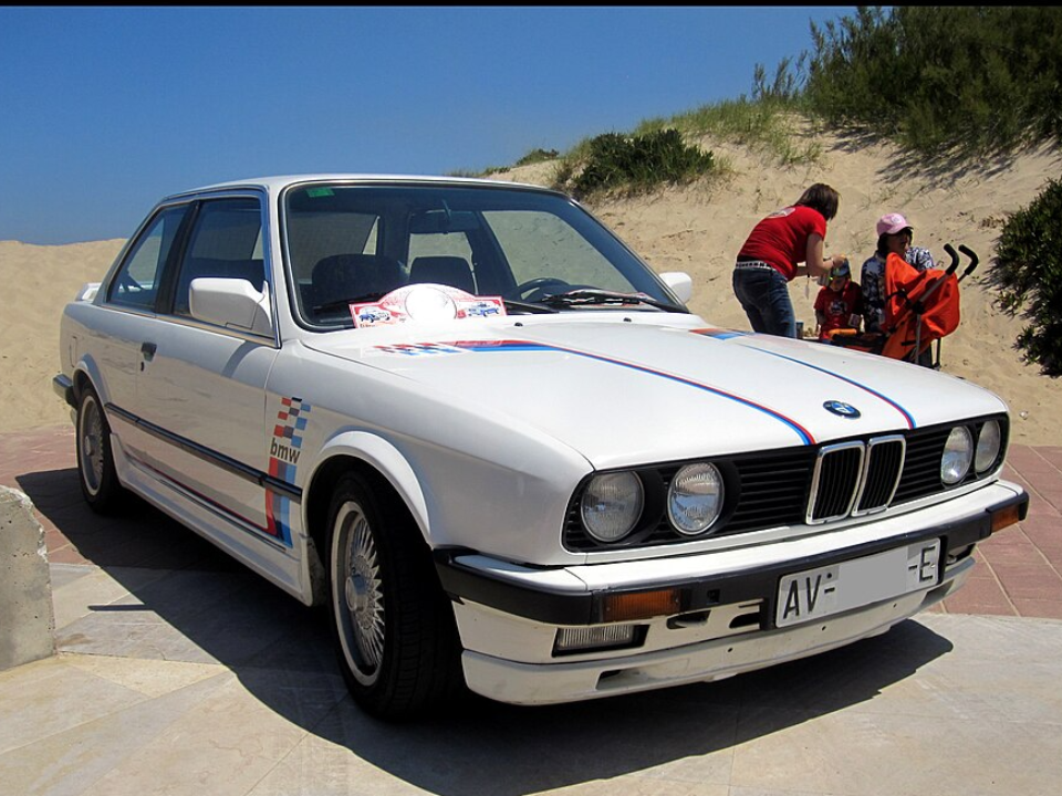 The E30 325i stays within reach because it lacks the extreme pricing of the M3 while offering similar balance and driving character. It features a 2.5L inline six producing about 168 horsepower, paired with rear wheel drive.