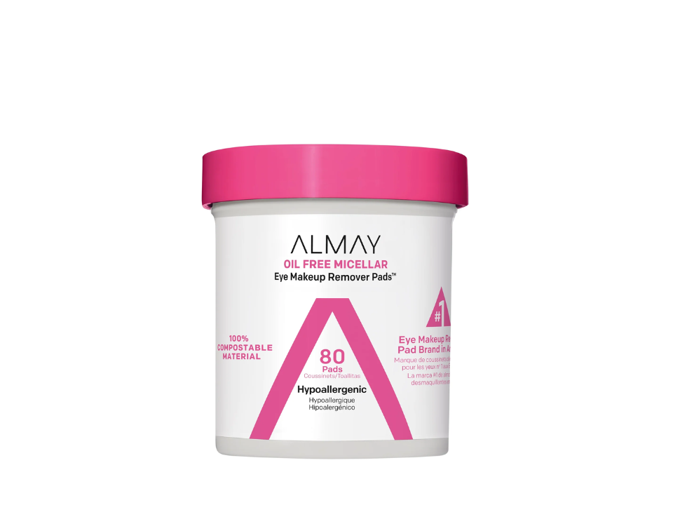 Almay Oil Free Gentle Eye Makeup Remover Pads give you ready to use rounds that focus on eye makeup removal. Each pad is soaked in a micellar-style solution with cucumber, aloe, and green tea extracts to cleanse and calm. The formula is oil free, ophthalmologist-tested, and made with sensitive eyes in mind. A single jar usually costs under $10 and can last through many nights of use.