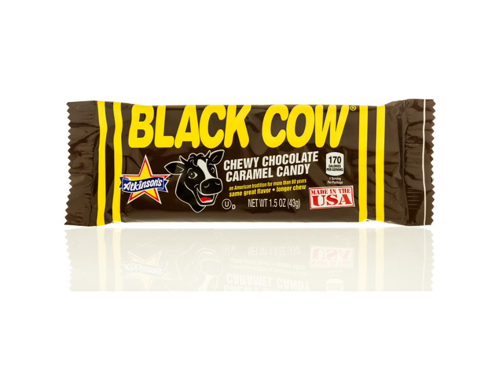 The Black Cow candy, which combines chocolate and chewy caramel, has been a favorite since the 1920s. The candy consists of a soft caramel center covered in a layer of chocolate, offering a nostalgic combination of sweet flavors.