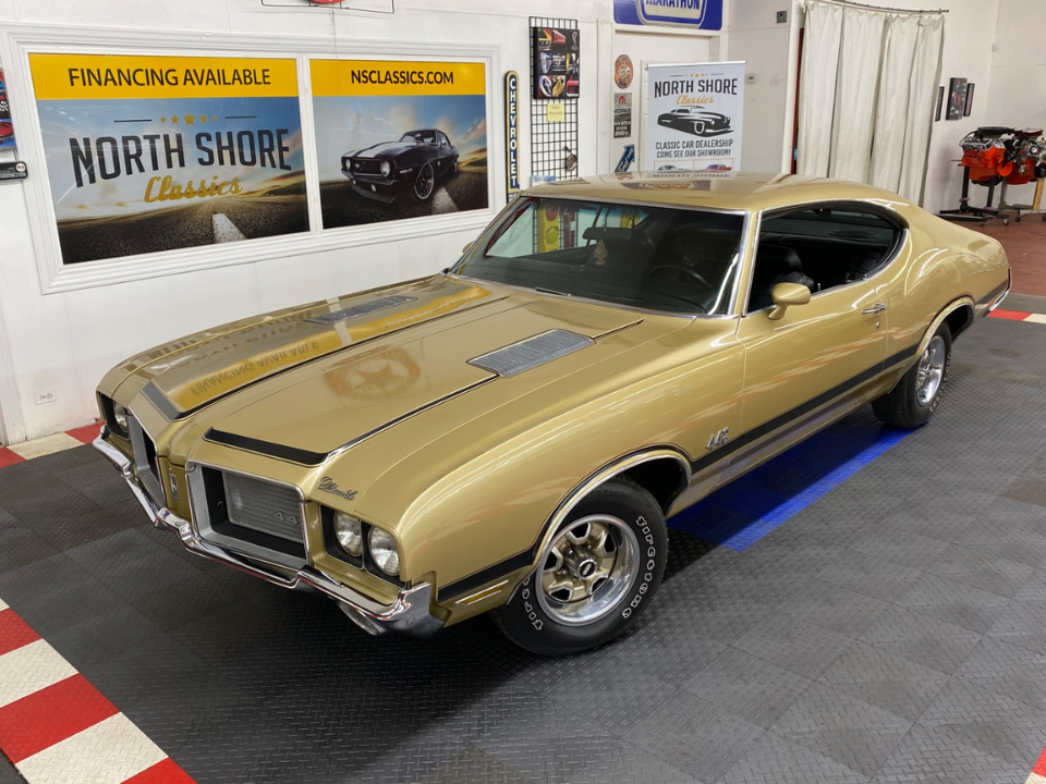 This 1972 Oldsmobile 442 still carries its original gold paint, which has developed a soft, mellow tone over the years. The aging paint is a testament to the car’s history and usage, offering a unique charm that is rare to find. Buyers often look for survivor cars like this because the original paint tells a story that a fresh coat simply cannot. The minor chips and fade on the surface add character to the car and reflect its past life on the road.