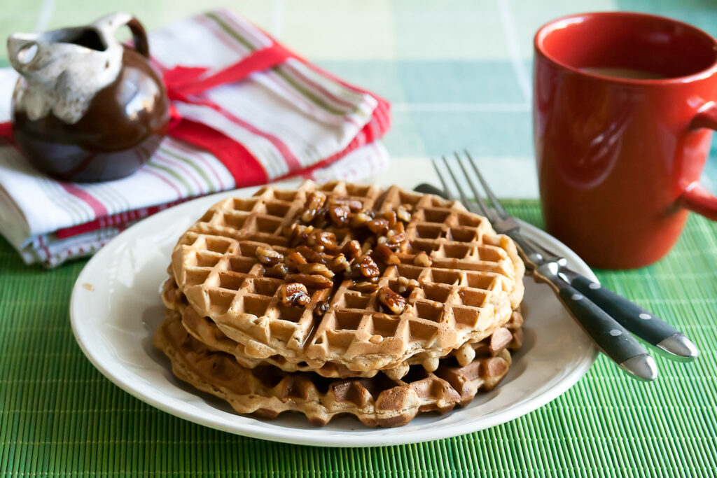 Start by whisking the dry ingredients together in one bowl. In another bowl, mix the wet ingredients, then combine them with the dry mixture. Pour the batter into a preheated waffle iron and cook according to the manufacturer’s instructions. Serve the waffles warm with your favorite toppings.