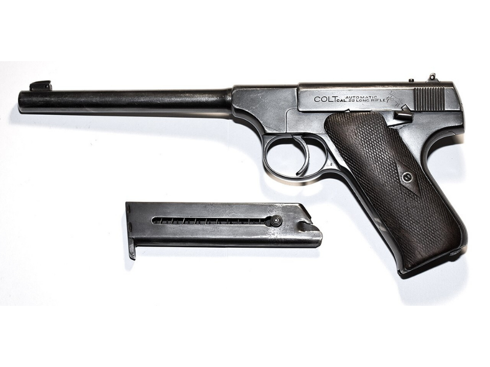The Colt Woodsman, designed by John Browning, entered production in 1915 as one of the most accurate .22 caliber pistols of its era. It quickly became popular among sport shooters and hunters due to its excellent balance and crisp trigger pull. Its design reflected simplicity and functionality, making it an enjoyable pistol to shoot.