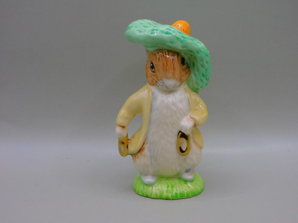 There is a built-in audience for Beatrix Potter material, and that helps this rabbit stay easy to enjoy. Benjamin Bunny looks good on his own, though he also fits nicely beside Peter Rabbit and other figures from the same line. Backstamp, paint wear, and ear condition can all change the price. When the colors remain clean and the figure is intact, it makes a very pleasing rabbit collectible.