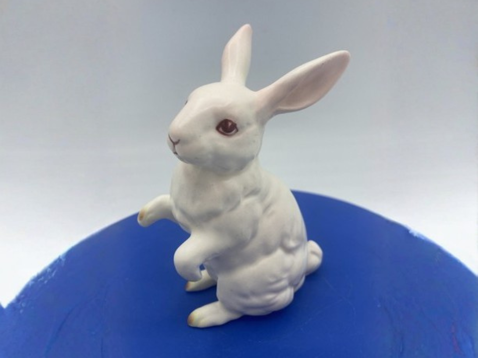 Goebel rabbit figures from West Germany are well-liked, and a small white bunny is one of the easier versions to recognize. These figures are usually described as porcelain with a smooth glaze and tidy modeling that feels a little more refined than many everyday holiday ceramics. That cleaner finish gives them a steady following among rabbit and animal figurine buyers. A fair market value is about $20 to $32.