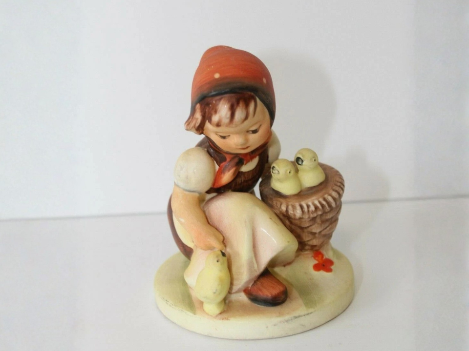 Scene pieces like this often hold attention a little longer than simpler figures. The mix of child and bird imagery gives it a soft nursery-style charm that many people still enjoy. Because there are more raised details, chips, and paint loss can hurt the look faster. Bright color and intact chicks make a big difference.