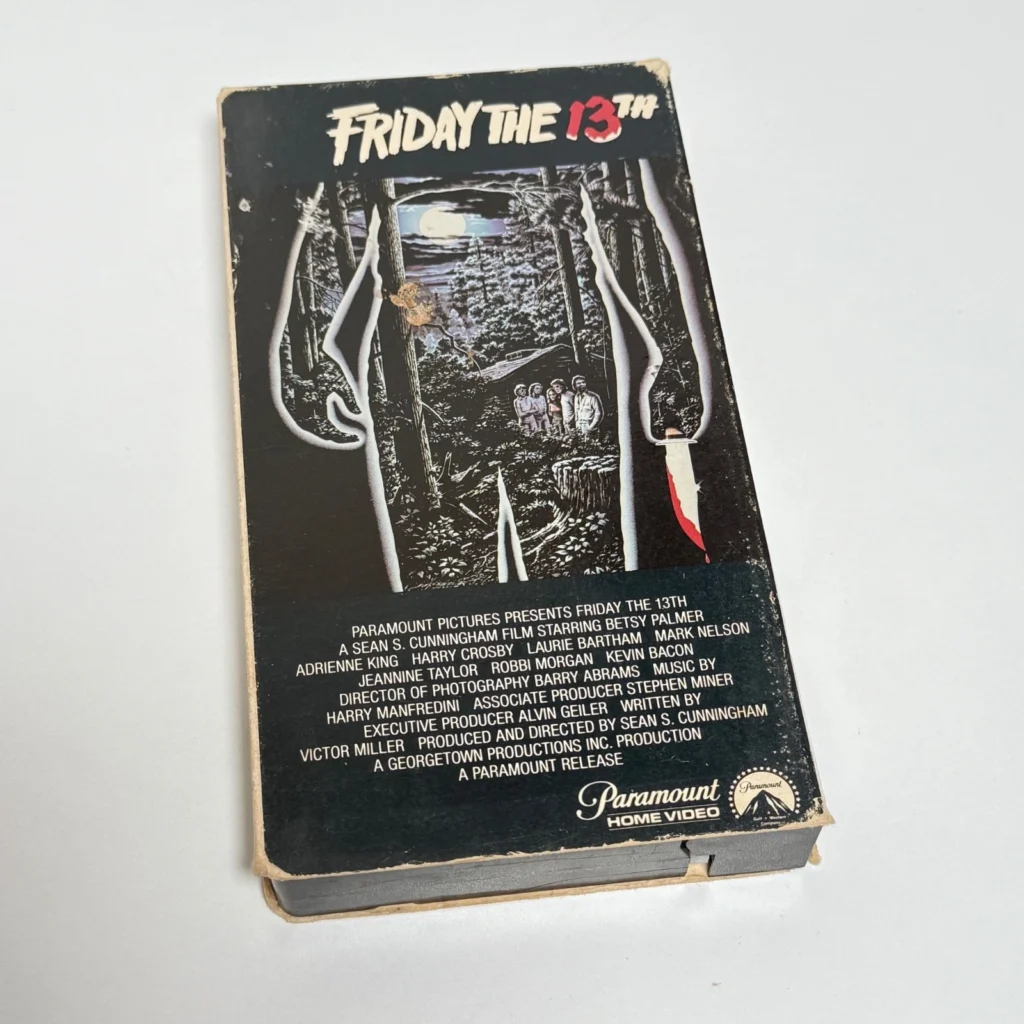 The first Paramount VHS of Friday the 13th is a classic that many fans grew up with. The cover art showing the silhouette against a dark forest remains burned into the minds of collectors. Early editions came with distinct watermarks and slight variations that make them fun to hunt down. It’s a piece that captures the rise of the 1980s slasher craze.