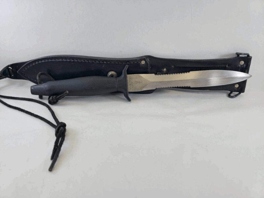 Introduced in the 1970s, the MK3 Navy Knife was designed for divers and sailors in need of a strong, corrosion-resistant blade. Its 6-inch stainless steel blade and sawback spine made it reliable in saltwater conditions. The knife was widely issued to the U.S. Navy and Coast Guard for multipurpose use. Authentic military-marked versions often sell between $200 and $450. Its practical design and durable materials helped it gain a lasting reputation.